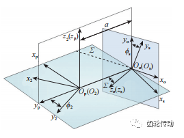 加工坐標系如圖 2 所示。在車齒過程中,工件繞zp軸旋轉,而Sp ( Opxpypzp ) 是工件的空間固定坐標系,與工件的初始位置重合。So (Ooxoyozo) 是車齒刀具的空間固定坐標系,與車齒刀具的初始位置重合。在加工過程中,刀具圍繞 zo軸旋轉并沿 yp方向進給。zp和yo之間的距離是 a,并且隨著加工的進行 a 逐漸減小。yp和zo之間的角度是 Σ。由于該角度的存在,加工過程中刀具與工件之間才會產生切削力以切除材料。Ss (Osxsyszs)和 S2 (O2x2y2z2)是與車齒刀具和工件固定連接的空間動態坐標系。當 Ss相對于So旋轉角度?s 時,S2相對于Sp旋轉角度?2。