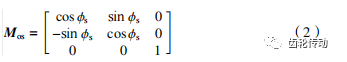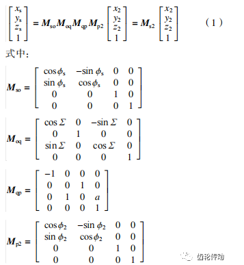 根據空間坐標變換原理,工件坐標系S2 與車齒刀具坐標系 Ss之間的變換關系可表示為