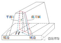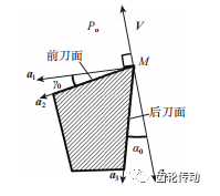 根據切削角度的定義,切削前角 γ0和切削后角α0 可以表示為