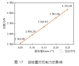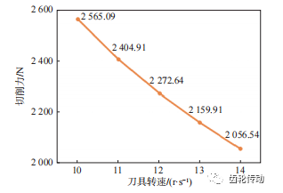 隨著刀具轉速的增加,切削力逐漸減小,且減小趨勢逐漸減小。因此,較高的刀具轉速有利于齒加工,如圖 18 所示。