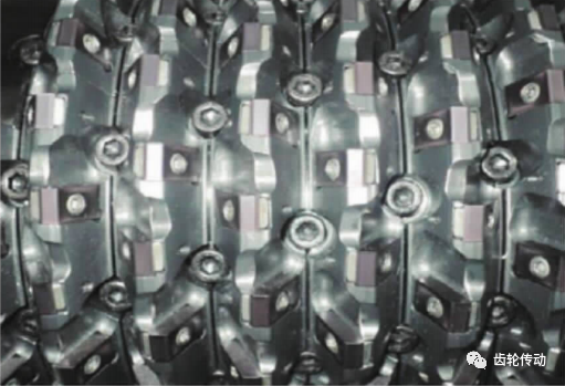 完善滾刀刀片組合: 在完善工程機械齒輪加工切削的過程中,相關人員需適時關注其內部刀具的使用效果,除了采用合適的涂層技術外,還要及時完備滾刀刀片組合。一般來講,在實行淬硬齒輪加工時,技術人員應借助適宜的刮削技術來改善齒輪形態,使其經過火的歷練后產生一定的形變,利用該項舉措可精準提升齒輪加工質量。在此前的傳統滾刀中,其采用的材質多以硬質合金為主,該類刀片在工程機械齒輪中的模數會在 8-14mm 之間,因而在完成對該項數據的探究后可將滾刀設定成帶有焊接形態的硬質合金滾刀片,在實際工作中該類滾刀受其內部結構影響難以達成當前存有的高效切削需求,再加上其內部的刃會存有較長的磨損時間,在經過長時間使用后會降低其整體的精度值。相關人員經過對工程機械齒輪加工切削程序的合理探究后,科學采用滾刀刀片組合,該類材料在實際應用中不但精準符合高效切削的具體要求,相較于硬質合金的刀片滾刀,還能適時提高切削速度,利用速度的改變來強化切削工作的整體效率,增強該項作業操作的穩定度。在正式使用滾刀刀片組合后,工作人員可發現該類組合無需開展刃磨活動,基于每個刀齒內的刀片可進行合理替換,若該刀片的磨損度影響其工作效果時,可立即更換該刀片,有效增強該材料使用的科學性,其具體形態如圖 1 所示。