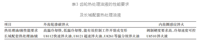 對齒輪熱處理油液的性能要求及長城典型的配套熱處理油液產品見表3。