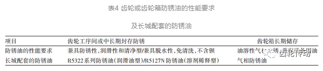 齒輪或齒輪箱對防銹油的性能要求及長城典 型的配套防銹油的見表4。