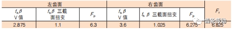 焊接差速器的主減齒輪和差速器焊接之后作為一個整體部件進行磨齒,磨齒過程中采用頂尖和差速器的軸承處外圓軸向定位,定位精度高,裝夾力大,磨齒后穩定性好,磨齒后的精度即為實際使用精度,沒有裝配誤差。通過多組齒輪數據得出表 3 中的齒輪精度平均值,對比兩種磨齒方式,發現焊接差速器的齒輪累積偏差 Fp 接近 1 級齒輪精度;而螺栓差速器的齒輪累積偏差 Fp 達到 3 級齒輪精度,焊接差速器的齒輪累積偏差提高了 1 級。焊接差速器的齒輪徑向跳動公差 Fr 達到 2 級齒輪精度;而螺栓差速器的齒輪的徑向跳動公差Fr 達到 3 級齒輪精度,螺栓擰緊后累積裝配誤差后齒輪的徑向圓跳動公差達到了 6 級,明顯焊接差速器的齒輪的徑向圓跳動公差提高了 3 級。焊接差速器齒輪的螺旋線傾斜偏差一致性 fhβ V 值和螺旋線三截面扭變偏差達到了 1 級齒輪精度;而螺栓差速器齒輪的螺旋線傾斜偏差一致性 fhβ V 值和螺旋線三截面扭變偏差達到了 2 級齒輪精度,齒輪精度提高了 1 級。可見焊接差速器齒輪可以達到 2 級齒輪,比螺栓差速器齒輪高了 4 級精度。量產時螺栓差速器主減速齒輪磨齒可以穩定達到 5 級齒輪精度,裝配和螺栓擰緊后,齒輪可以達到 6 ~ 7 級精度。而量產的焊接差速器的主減齒輪可以穩定達到 4 ~ 5 級精度,沒有裝配誤差。焊接差速器在齒輪精度方面有明顯優勢。