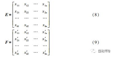 采用 Sobol 法在求解敏感性系數(shù)的過程中,涉及多重積分求解,而對于復(fù)雜模型的多重積分求解通常十分困難,所以常通過蒙特卡羅法來近似模擬多重積分求解。一般的計算方法如下:對輸入?yún)?shù)進行兩次獨立采樣,得到 E 和 F 兩個獨立的采樣矩陣,結(jié)果如下: