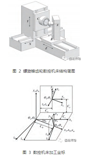 螺旋錐齒輪具有重合度高、承載能力強、傳動比高和傳動效率高等特點,廣泛應(yīng)用于汽車、航空和礦山機械等領(lǐng)域。螺旋錐齒輪的制造精度與數(shù)控機床的誤差直接相關(guān)。數(shù)控機床誤差包括幾何誤差、熱誤差和伺服控制誤差等。其中,機床幾何誤差具有重復(fù)、穩(wěn)定的特點,可以通過數(shù)控系統(tǒng)進行精確補償。因此研究機床幾何誤差的特點、確定關(guān)鍵幾何誤差項對于齒面偏差補償和機床運動精度的分配、維護有著重要的作用。