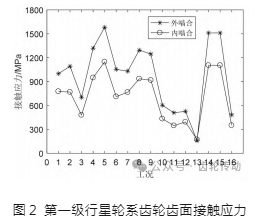 計算得到了齒輪嚙合齒面接觸應力,如圖2所示。