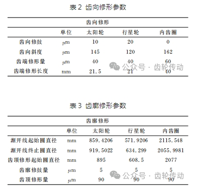 根據文獻介紹可知,根據經驗公式計算得到的齒輪修形參數,對齒輪傳動誤差和齒輪偏載情況會有所改善,但往往達不到最理想的效果。所以在經驗公式的基礎上,通過精益傳動計算軟件進行修形參數的尋優迭代,最終得到的修形參數如表2和表3所示。