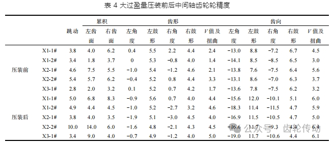 通過對比大過盈壓裝和小過盈壓裝對齒輪精度的影響,可以得到以下幾點結(jié)論: