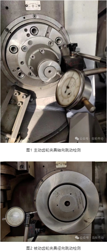 工裝夾具要定期校驗和保養,達到使用標準。如工裝夾具精度不達標或在使用中磨損,就會影響齒輪精度。要使用精度高確保加工精度,耐用保持穩定可靠一致性,和適用安全性,滿足加工的精度需求,在實際生產中主被齒切齒夾具的徑向跳動和軸向跳動應采用校正棒和校正環進行校驗,徑向跳動和軸向跳動均應控制在≤0.02mm,具體檢測部位及檢測方法如圖1和圖2所示: