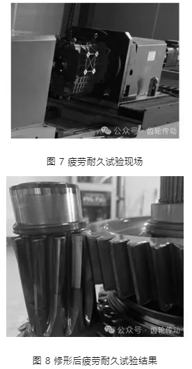 對重新修形后的齒輪再次進行試驗,相同試驗工況下原本失效的中間軸一檔齒輪并未出現點蝕,通過了疲勞耐久試驗(圖 7),證明新的修形方案有效地提高了齒輪疲勞壽命(圖 8)。