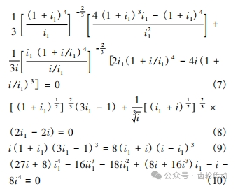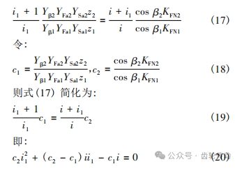 由于 c1 和 c2 與齒輪參數有關,故需要與齒輪設計過程一起迭代。首先,取 i1 =槡i進行齒輪設計,求 c1 和 c2,再由式(20) 求 i1 即可。