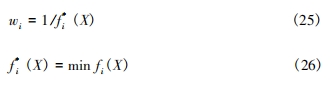 按照此方法,評價函數不僅不會受到各分目標函數值相對大小的影響,還充分反映出各單目標函數值偏離各自最優值的程度。