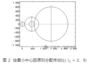 各種分析原則的計算結果表明,按最小體積分配原則分配傳動比,所得減速器在軸的垂直平面內尺寸相對較小。若要滿足較小中心距尺寸的要求,顯然采用最小中心距分配原則分配傳動比是能達到的。但是從兩級傳動的被動齒輪直徑大小來看,中心距分配較之其它分配原則要大得多。這從整個減速器在軸的垂直平面內尺寸而言,反而達不到較小尺寸的要求。也就是說,單純滿足最小中心距要求,并不能設計出較小結構尺寸的減速器。