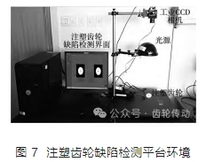 在注塑齒輪生產過程中,由于溫度、注塑時間等因素影響,齒輪可能出現表面黑點、輪齒變形、輪齒缺失等缺陷。由于齒輪缺陷檢測過程往往十分復雜,檢測設備也較為昂貴,因此在實際生產中迫切需要對齒輪進行快速檢測和分析。傳統齒輪制造過程中的檢測方式以人工檢測為主,但是人工檢測不可避免地會出現錯檢、漏檢等問題。機器視覺檢測是一種非接觸式無損檢測,在高速、精細和重復的制造過程中更加可靠,與傳統的檢測方法相比,具有不可替代的優越性。