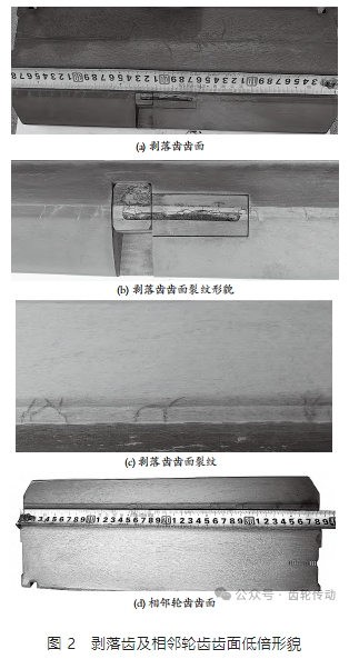 齒面剝落是齒輪常見的失效形式之一,國內眾多學者對齒輪的失效形式進行了研究。候學勤等人從輪齒斷裂失效的類型、特征、原因及預防措施等方面進行了闡述;王德寶等人從齒輪的化學成分、金相組織、宏觀和顯微硬度及斷口形貌等方面進行了檢驗分析;王金星等人從硬度方面分析得出了過厚的脆性硬化層是導致太陽輪齒面剝落的主要原因;張俊華等人從齒面疲勞點蝕方面分析了影響齒面剝落的因素及相應的預防措施;陳睿等人通過能譜成分分析、金相組織檢查及硬度檢測等方法對齒輪表面進行分析,得出局部應力過大是導致輪齒剝落的主要原因。