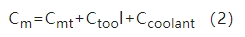 式中 :Cmt 是原材料消耗產生的碳排放量 ;Ctool 是刀具損耗產生的碳排放量 ;Ccoolant 是切削液消耗產生的碳排放量。