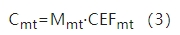 式中 :Mmt 是原材料切除量;CEFmt 是原材料碳排放系數。