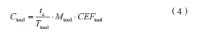 式中 :Mtool 是刀具質量;CEFtool 是刀具的碳排放因子;Ttool 是刀具壽命(Ttool=N+1,N 為使用次數);tc 是使用時間。
