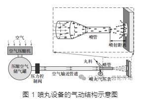 噴丸強(qiáng)化的基礎(chǔ)是具有足夠速度的彈丸,本文采用如圖 1 所示的氣動(dòng)系統(tǒng)來形成高速的彈丸。
