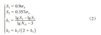 式中:S1、S2分別為低周疲勞和高周疲勞循環次數所對應的應力幅;b1、b2 為S-N 曲線高周疲勞段的斜率;σb為材料的抗拉強度,取值600 MPa;Nc1為疲勞轉換點,經驗值為106。