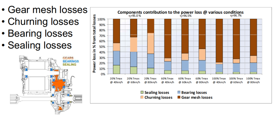 減速器傳動效率直接影響整車能耗,針對整車降能耗、減速器提升效率的需求,以某電動汽車減速器為研究對象,建立了包含齒軸、軸承和油封等零部件的減速器效率計算模型,研究了不同載荷、不同轉速工況下齒輪嚙合功率損失、軸承功率損失、攪油功率損失和油封功率損失對整個減速器效率的影響,以及軸承型號、齒輪宏觀幾何參數和微觀修形參數對效率的影響。結果表明,齒輪嚙合功率損失和軸承功率損失對整個減速器效率的影響較大。通過軸承重新選型、齒輪宏觀幾何參數優化,可以大幅提升減速器的效率。