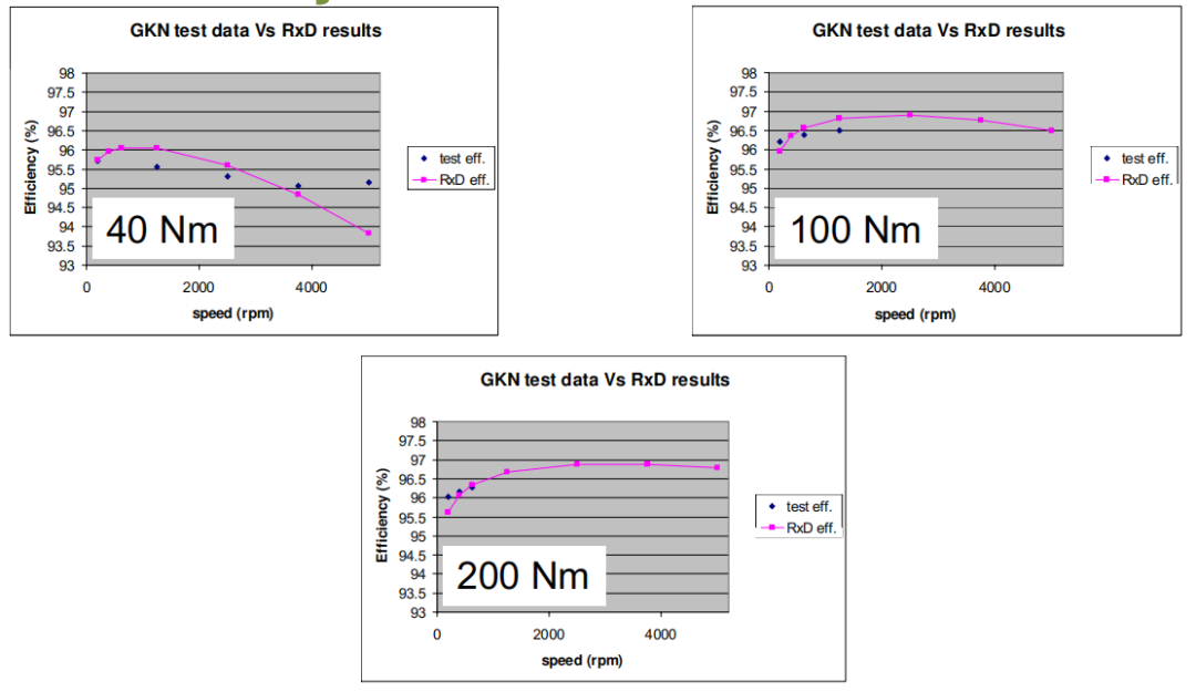 三、不同扭矩下減速器效率測試結果與仿真計算結果的對比