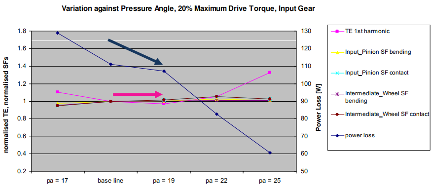 ? 壓力角:壓力角越大功率損失越小,TE主要受重合度的影響。