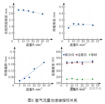(2)保護(hù)氣體流量對(duì)焊縫質(zhì)量影響焊接試驗(yàn)采用純度為 99.99%的氬氣、單向側(cè)吹方式進(jìn)行保護(hù)。采用惰性氣體進(jìn)行焊接保護(hù)主要基于兩個(gè)目的:一是焊接過程中處于非真空狀態(tài),由于焊縫區(qū)受熱高溫容易被空氣氧化從而導(dǎo)致力學(xué)性能惡化,合適流量的保護(hù)氣可防止焊縫表面被氧化;二是保護(hù)激光聚焦系統(tǒng)免受金屬蒸氣污染和液體熔滴的濺射。氬氣比較便宜且密度大,保護(hù)效果較好;但氬氣在高溫受熱時(shí)同樣容易電離形成等離子體可能屏蔽部分光束能量對(duì)焊縫質(zhì)量不利。