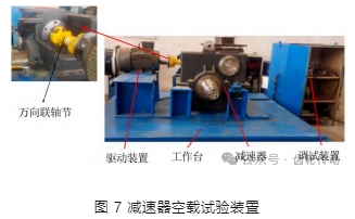 對修復(fù)組裝合格的減速器進(jìn)行空載試驗,圖 7 為減速器空載試驗裝置。