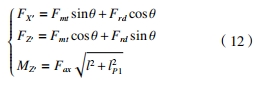式中:FX′、FZ' 為坐標系Σqy 中 x ′與 z'方向的力;MZ ′ 為 z'方向的彎矩。
