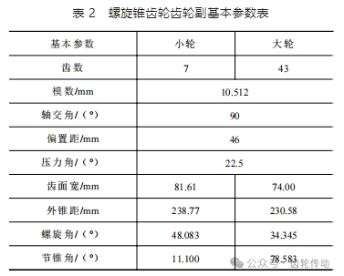 為了檢驗本文提出的實體有限元法分步螺旋錐齒輪傳動系統嚙合錯位分析方法的準確性,以某客車驅動橋為例進行齒輪副嚙合錯位分析。其中螺旋錐齒輪基本參數見表 2。