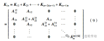 式中:K(n−1)n為 2×2 的剛度矩陣;矩陣 K(n−1)n包含