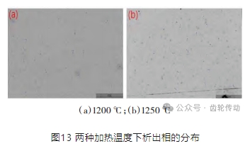 從圖 13 中可以看出,加熱溫度為 1 250 ℃的 AlN 析出相的尺寸更加細小,均勻分布,且 AlN 質點數量增多,能有效釘扎奧氏體晶界,抑制晶粒長大。在滲碳處理過程中,組織中的AlN析出相對奧氏體晶粒長大的控制具有重要的作用,但晶粒尺寸較小的AlN對釘扎起不到作用,尺寸較大的AlN 析出相對釘扎反而起不利的作用。在各種生產和熱處理等工藝過程中,需要嚴格控制AlN析出相的尺寸和分布。