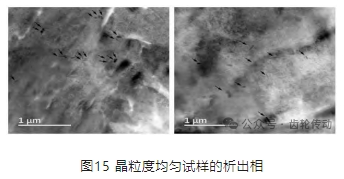 相比于混晶試樣,晶粒度均勻試樣的析出相如圖15所示,分布均勻細小,且沒有尺寸較大的析出相,尺寸幾乎都是細小的,基本每個視場的分布也更加均勻。