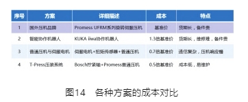 新T-Press壓裝系統采用擰緊軸和普通壓機進行組合的方案,比國內外企業常用的集成旋轉伺服壓機和協作型機器人的成本降低 50% 以上,如圖14所示。