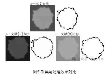 采集與處理效果分析:用上述 3 種方法采集小缺陷位置圖像,并進行圖像處理,以齒輪1的小缺陷為例,對比各方法的采集與處理效果,如圖5所示。