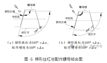 3)當(dāng)嚙合區(qū)位于③位置,應(yīng)選擇相對(duì)于上一螺母右半角減小的;