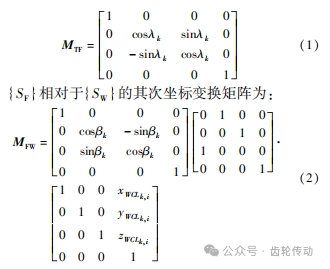 描述切觸區域的切入角和切出角是在刀具坐標系{ST}下,然而其計算過程需要在工件坐標系{ SW} 實現,因此需要描述二者之間的變換關系。