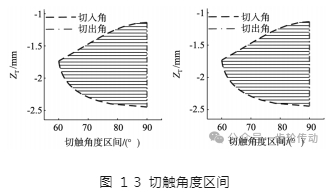 圖 13 所示分別為刀具路徑 2 和 4 通過仿真計算出的切入角和切出角。