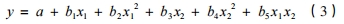 類似的,有 2 個 x 因子的響應曲面模型表達式為: