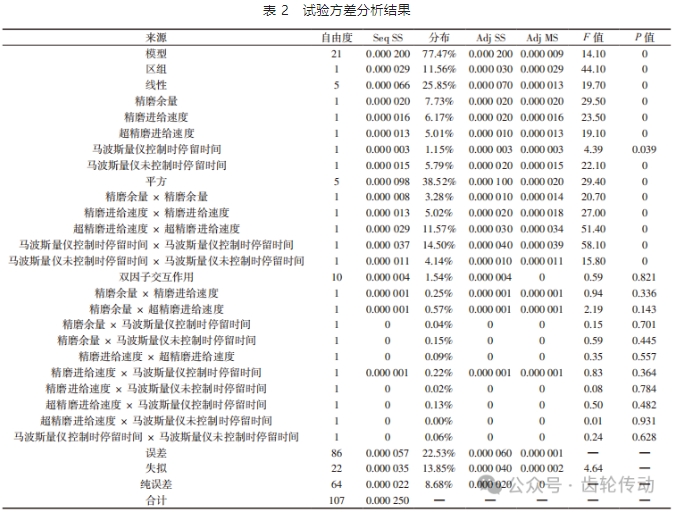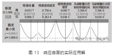 當前,響應曲面法作為一種優化方法開始在各個行業運用:在電力系統,對電子水泵葉輪進行了優化;在芯片行業,對 SiC 單晶片切割過程進行了多目標優化;在鐵路系統,對磁懸浮開關磁阻電機進行了優化;在汽車行業,對渦輪增壓器廢氣閥門激光焊接工藝進行了優化研究。同時,為了響應曲面法,各領域也將所獲得的模型用于預測與預控制。本研究通過對高精磨削過程參數進行響應曲面試驗分析,實現了對過程控制參數的優化,并最終通過所獲得的模型,進行預測控制,實現了對高精磨削加工參數設置的指導。