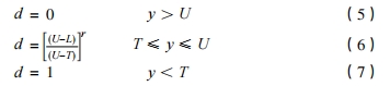 式中,d 表示合意值;y 表示響應的預測值;T 表示響應的目標值;U 表示響應的最大可接受值;r 表示響應的合意性函數。