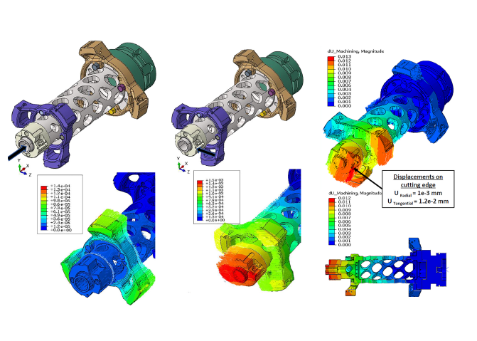 在刀具研發(fā)過程中,有限元法(FEM)可綜合考量切削力、加工位移場、固有頻率及最大變形量等多項參數(shù)。ISCAR刀具設(shè)計工程師通過FEM分析與切屑流動建模,成功攻克了這一高難度應(yīng)用領(lǐng)域的技術(shù)瓶頸。(圖10)