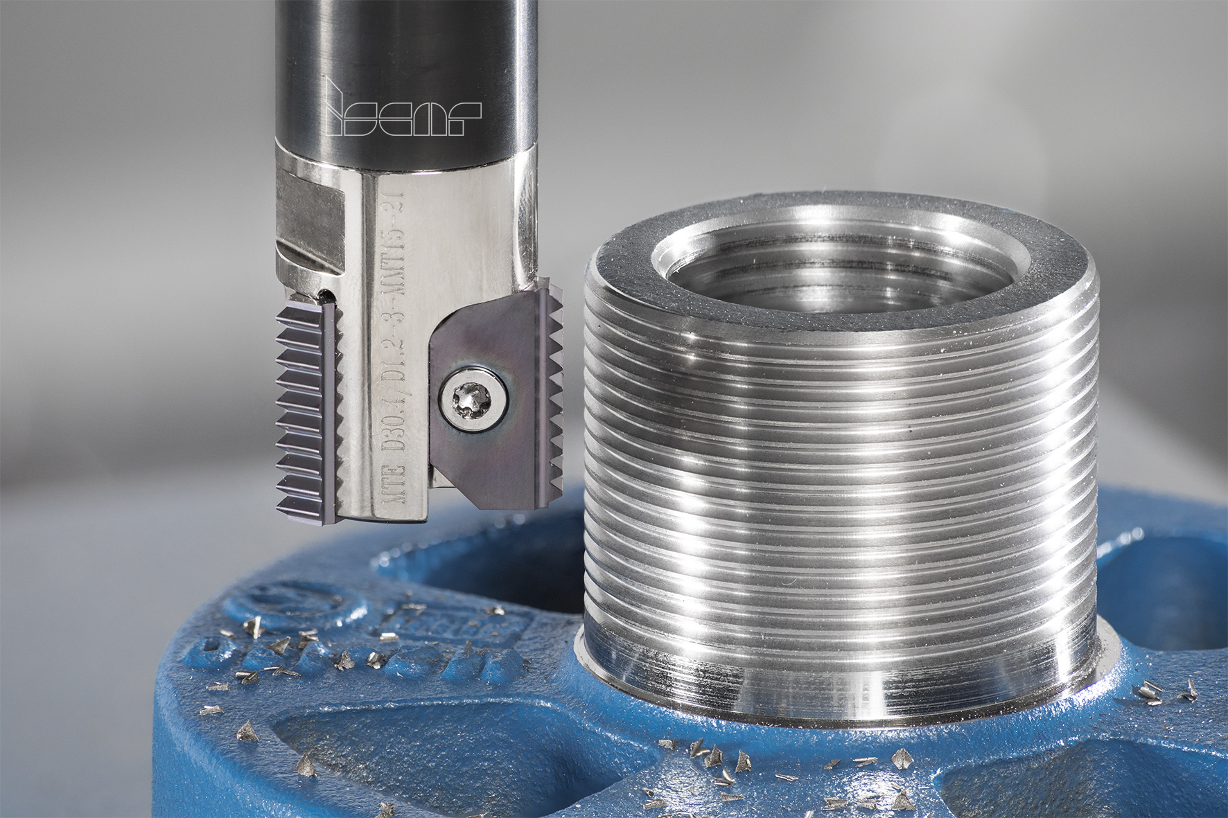 油氣行業(yè)的螺紋加工對刀具提出了嚴(yán)苛要求,必須能在嚴(yán)格公差范圍內(nèi)加工高質(zhì)量螺紋。ISCAR的螺紋車削和銑削產(chǎn)品線正是為此類高要求工況而設(shè)計(jì),其刀具能實(shí)現(xiàn)精確的螺紋牙型、優(yōu)異的表面粗糙度和持久的刀具壽命,是鉆井桿、接頭和井口設(shè)備等部件螺紋連接的理想加工方案。ISCAR螺紋加工解決方案還包含一系列螺紋車刀和螺紋銑刀,可滿足多樣化的螺紋加工需求,實(shí)現(xiàn)高效生產(chǎn)。(圖3)