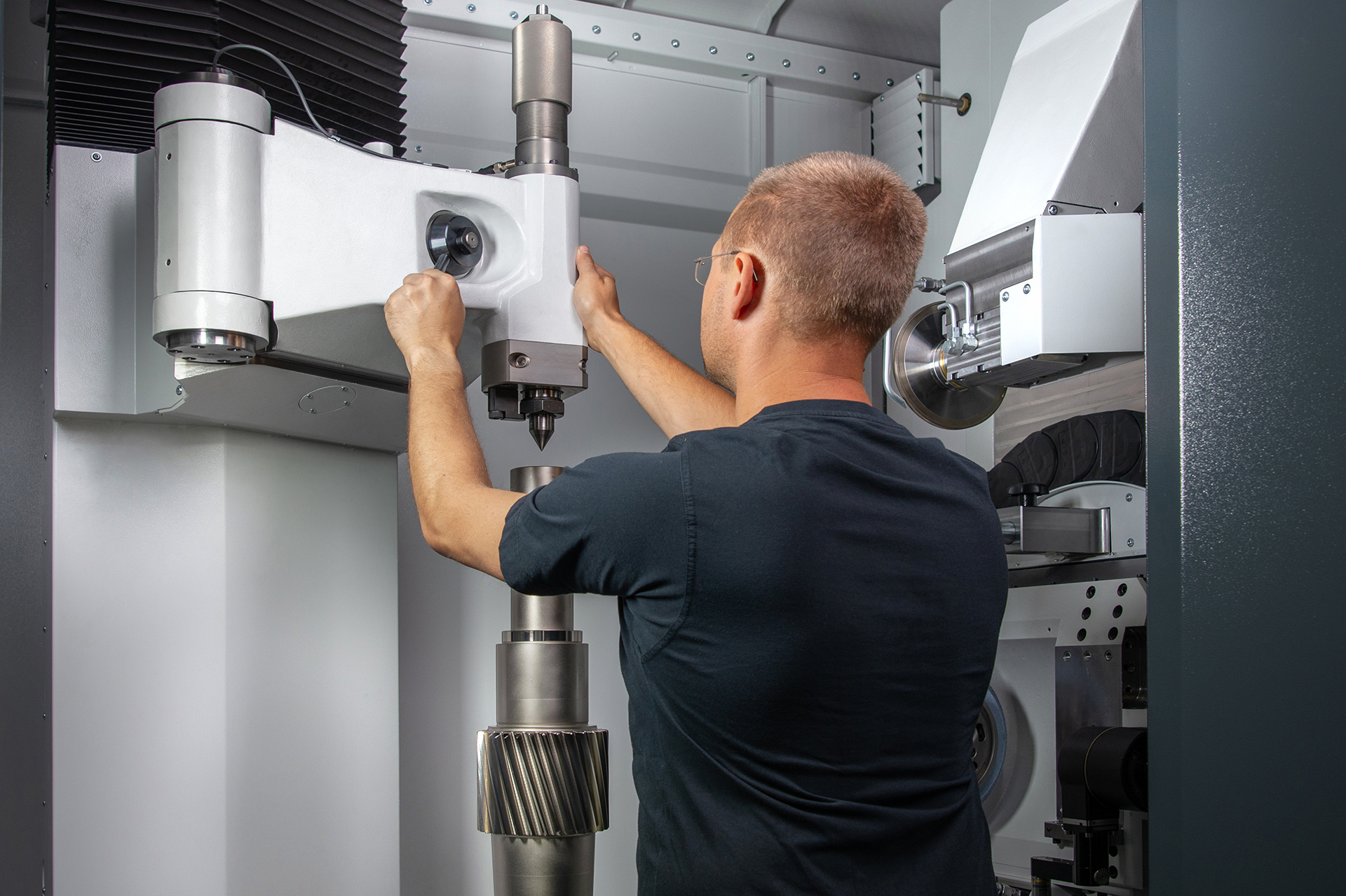 KNG 5P expert具有出色的裝配便利性。更換修整滾輪時,直接驅動的修整主軸可旋轉到符合人體工程學的位置。因此,修整刀具可以在機床外面輕松更換。優化后的支座具有850 mm的行程,上面安裝的擺動式尾座具有可無級調節的尖端壓力(最高 2,000 N),顯著擴展了尖端夾緊的應用范圍。