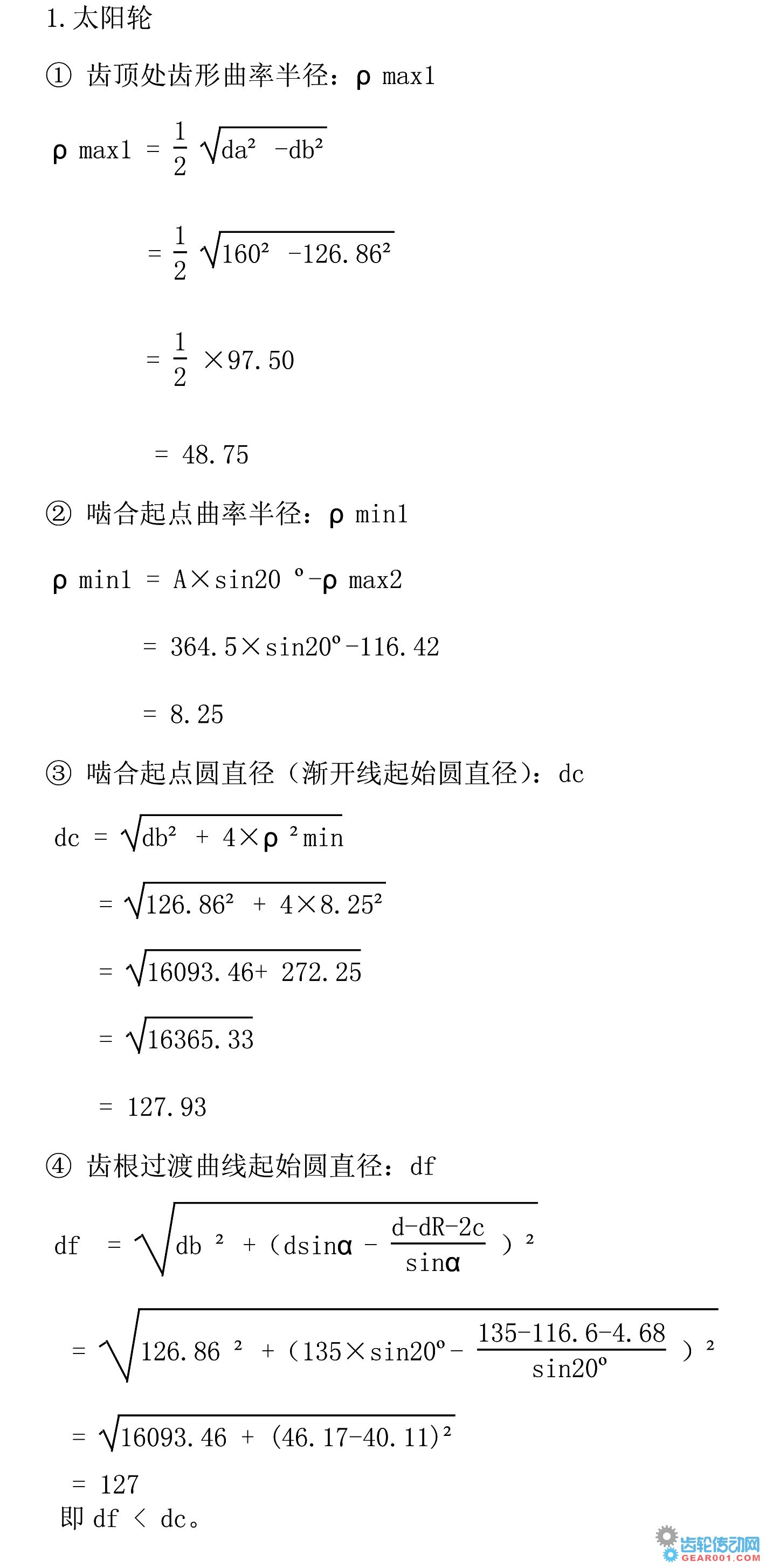 二、太陽輪、大行星輪的齒根干涉計算