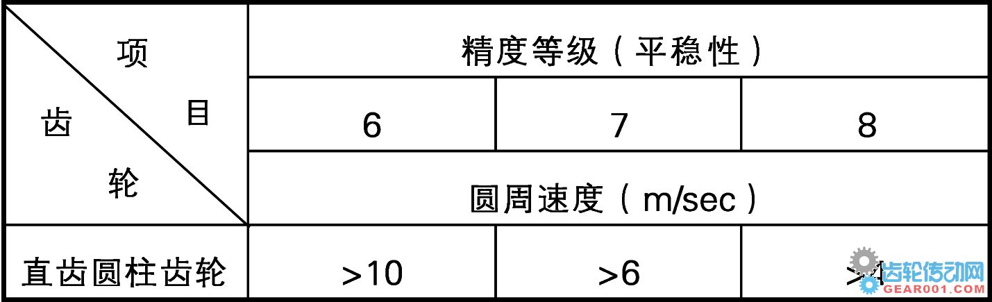 ②對于外接圓柱齒輪,圓周速度的要求見下表,滿足要求時,進行齒頂倒棱。
