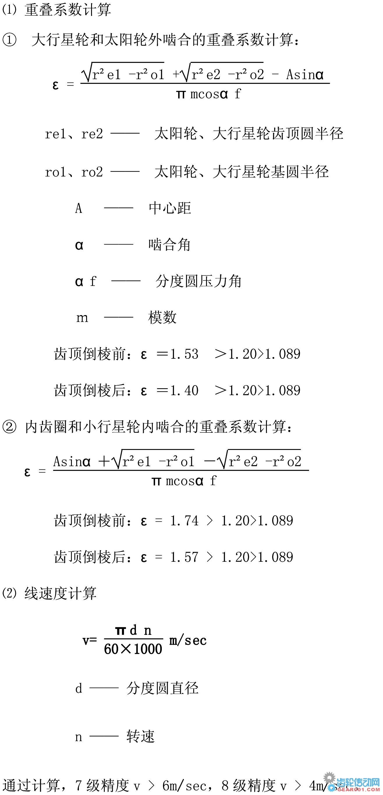 ①因齒頂倒棱的結果,在直齒傳動中,使重疊系數(ε)小于1.089,不得進行齒頂倒棱。眾所周知,重疊系數越大,動載荷越小,嚙合噪音越低,強度也越高,傳動越平穩。