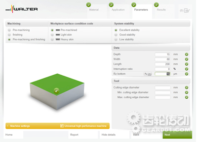圖注:Walter GPS 2.20:從要解決的加工任務(wù)出發(fā)輸入?yún)?shù)。